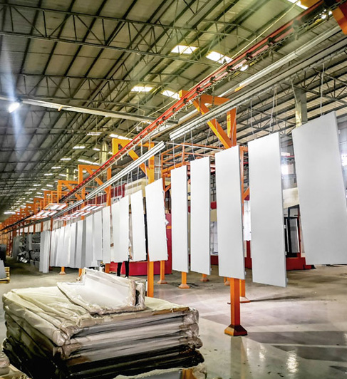 抗震、抗風:擁有全數控轉塔沖床15臺,折彎機近60臺,剪板機30臺,雕刻機20臺;專業的厚板(1.0-4.0mm)零色差生產工藝,涂層質量達到進口鋁單板水平;